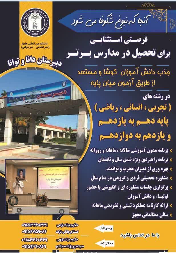 🏛️ دانشگاه بین المللی چابهار (غیر دولتی_غیر انتفاعی) با همکاری شرکت شهرک های صنعتی استان سیستان و بلوچستان برگزار مینماید.